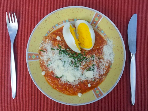 Unsere erste vorsichtige Kostprobe bestand aus einem sehr kleinen Stück des entsprechend lange gekochten Eis. – Angeblich sollen Enteneier anders schmecken als Hühnereier. Wir haben jedoch keinen Unterschied geschmeckt. (Wir schmecken auch keinen Unterschied bei einem Wachtel-Ei …)